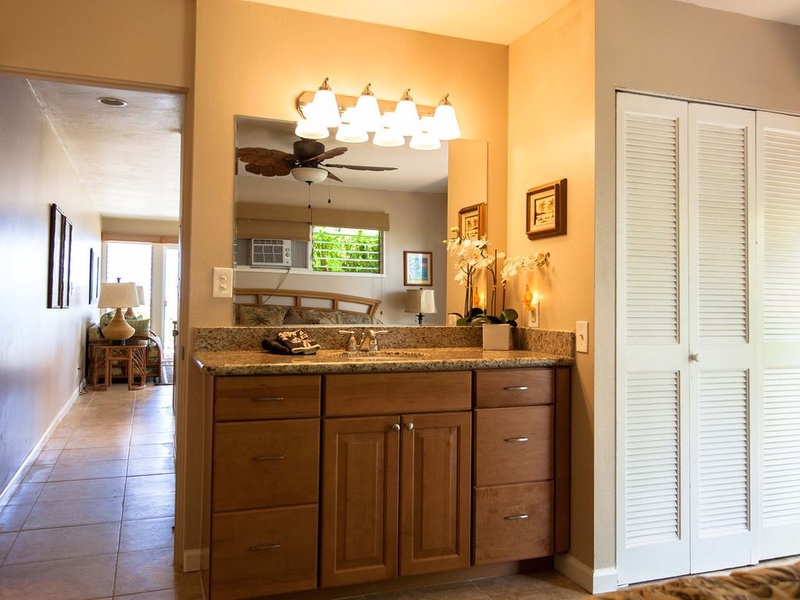 A spectacular oceanfront escape awaits at this ground-level condo in Kailua-Kona, where the gentle waves seem to kiss your lanai. Enjoy panoramic, 180-degree views of the ocean, watch windsurfers and boats glide by, and marvel at the unforgettable sunsets each evening.